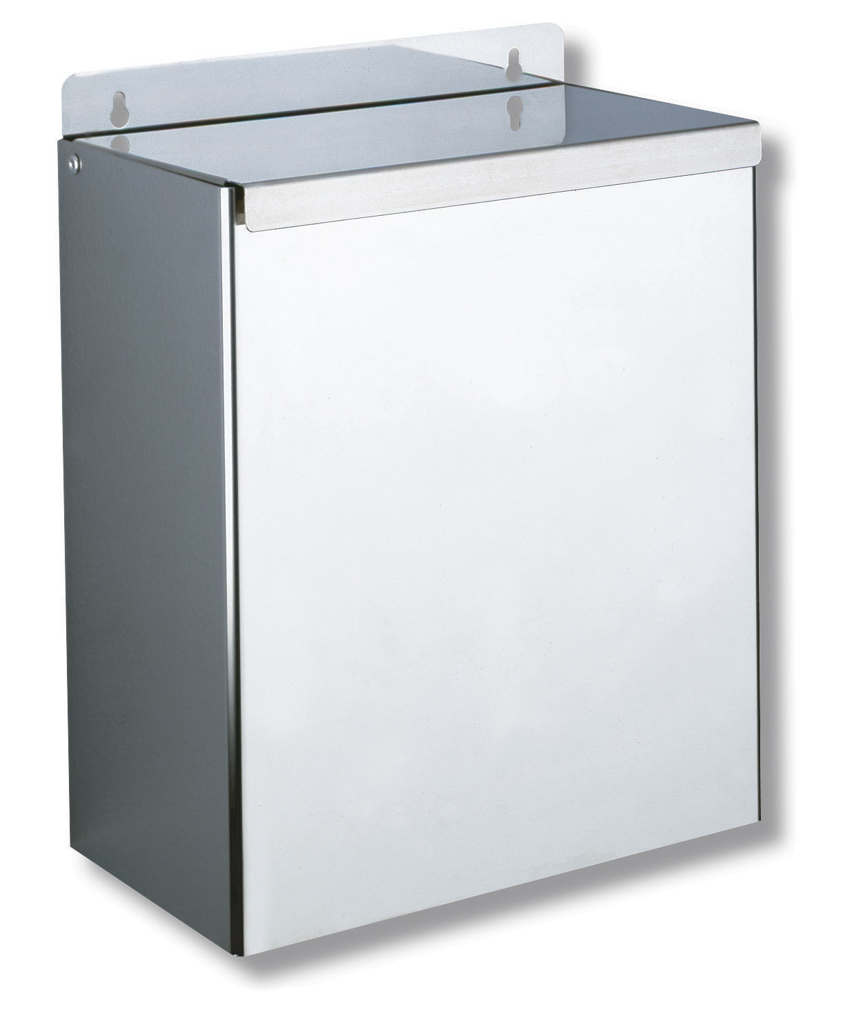 Réf. 462Poubelle inox rectangulaire murale pour essuie-mains et papiers usagés.