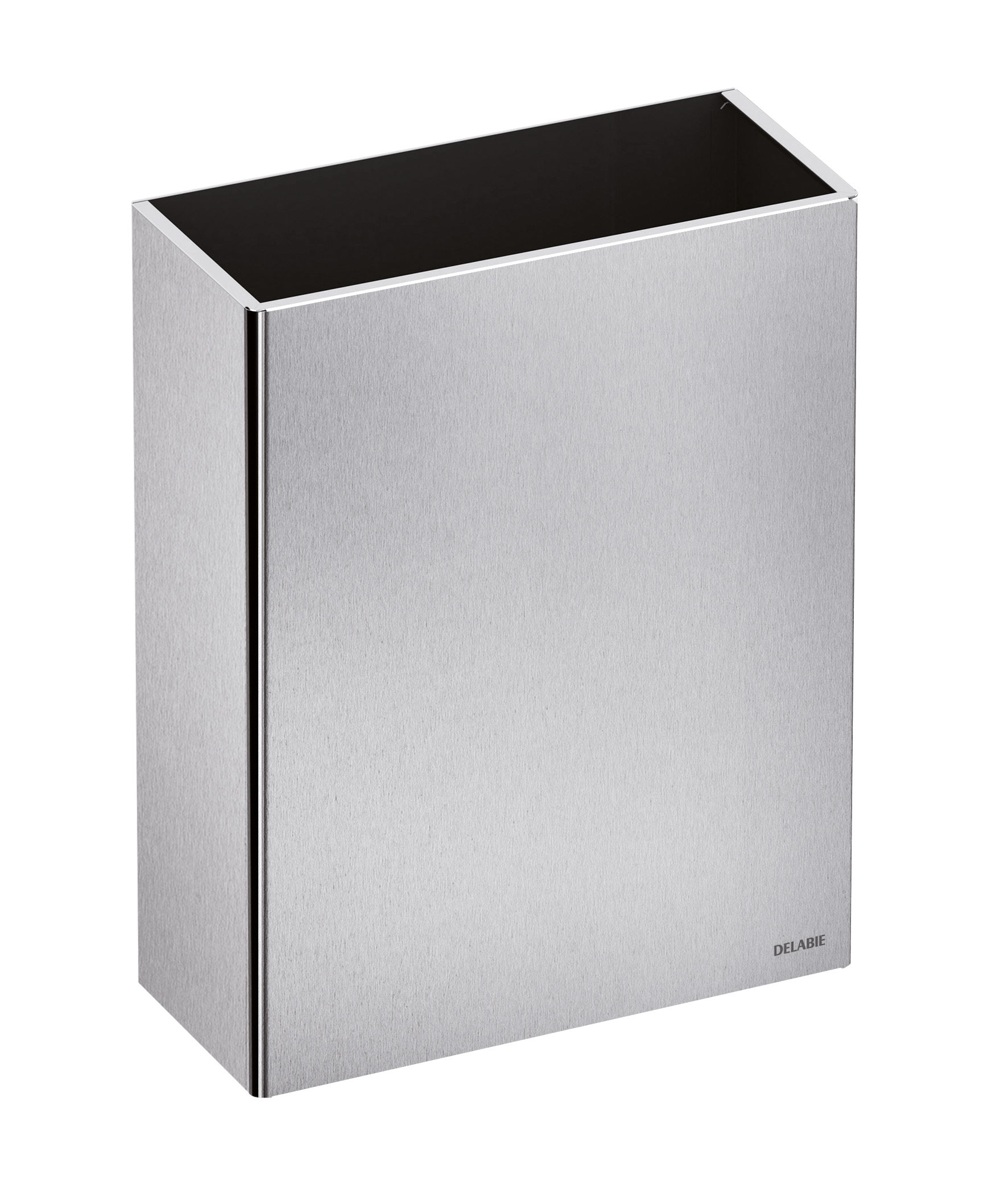 Poubelle inox rectangulaire murale pour essuie-mains et papiers usagés.