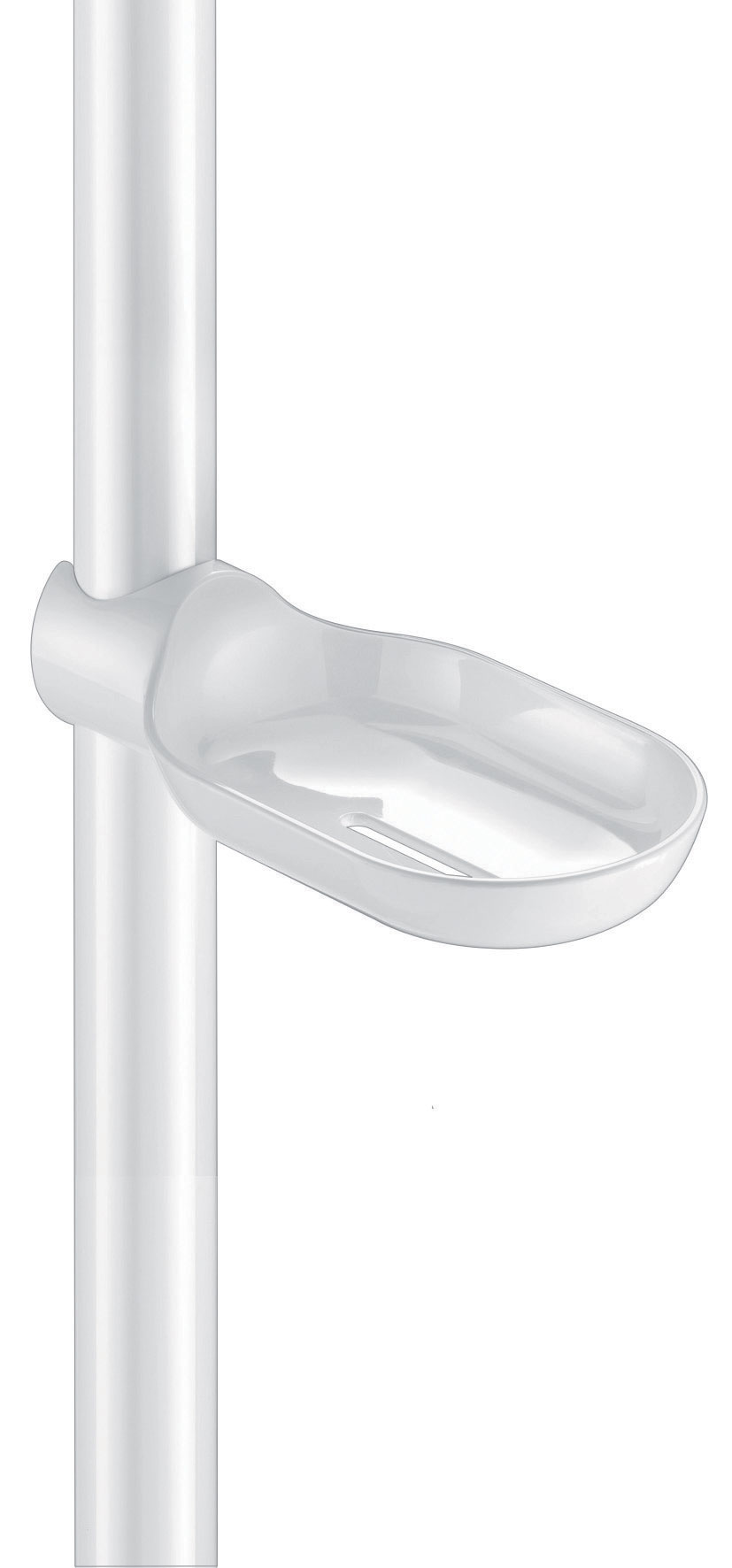 Porte-savon pour barre de douche, coulissant clipsable, blanc