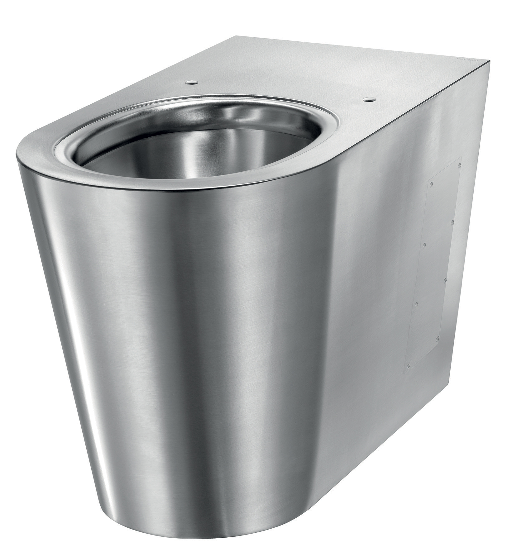 Perçages pour la fixation de l’abattant. Livré avec cache-trous en Inox pour utilisation sans abattant.
