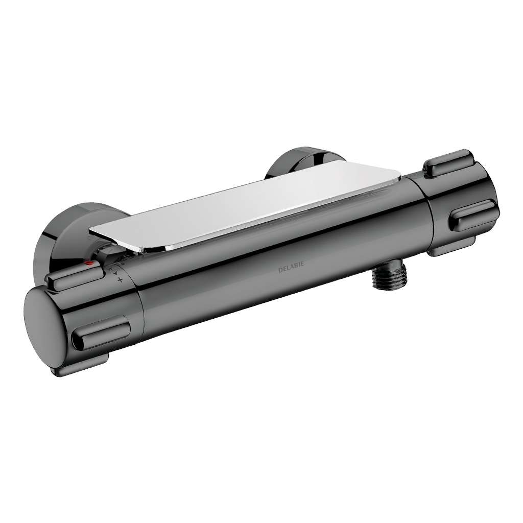 Réf. 850Tablette chromée parfaitement adaptée pour les mitigeurs thermostatiques de douche bicommandes (réf. H9741 et H9739).