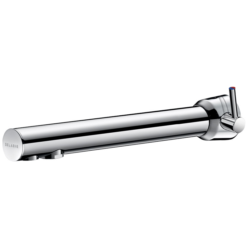 Bec chromé pour installation en traversée de cloison ≤ 110 mm.