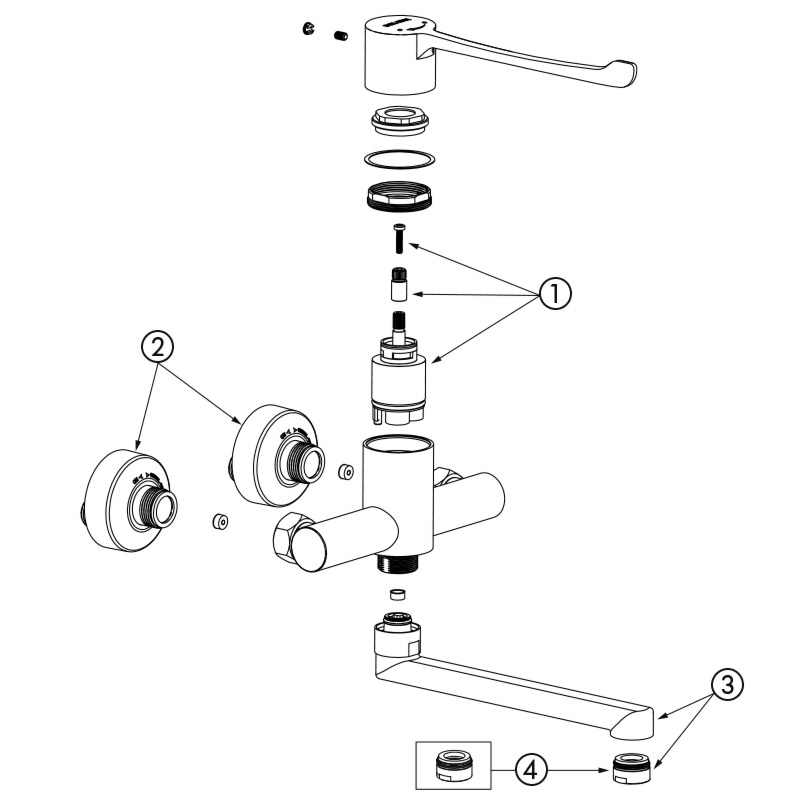 Réf. 2437Mitigeur de lavabo mécanique séquentiel mural.