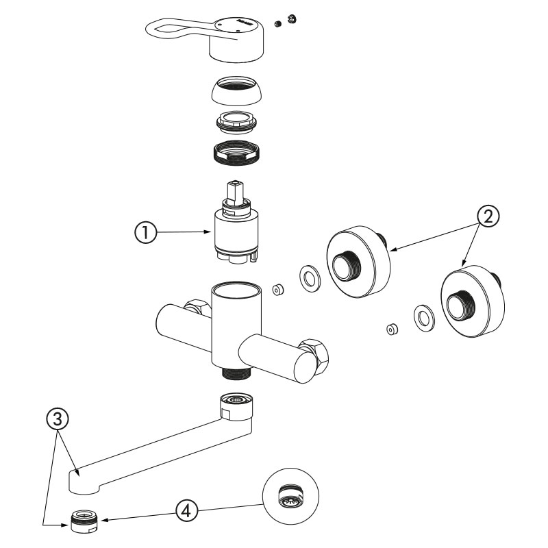 Réf. 2445SMitigeur de lavabo mural mécanique.