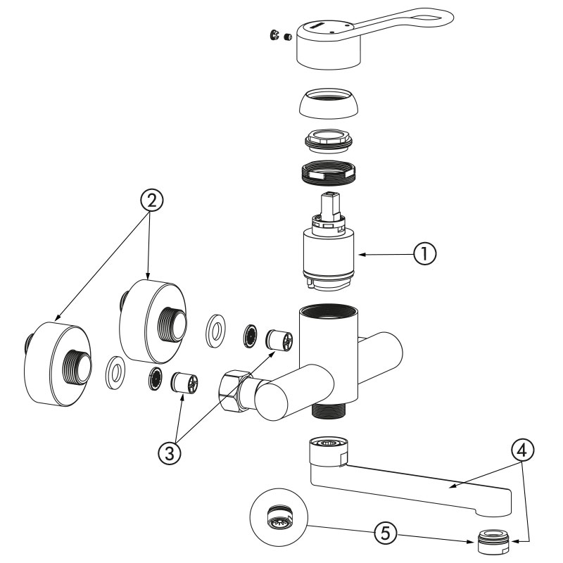 | 2445LS | Cartouche classique - Bec L.200 - Levier Hyg. - Raccords excentrés standards | 381,00 € HT |
