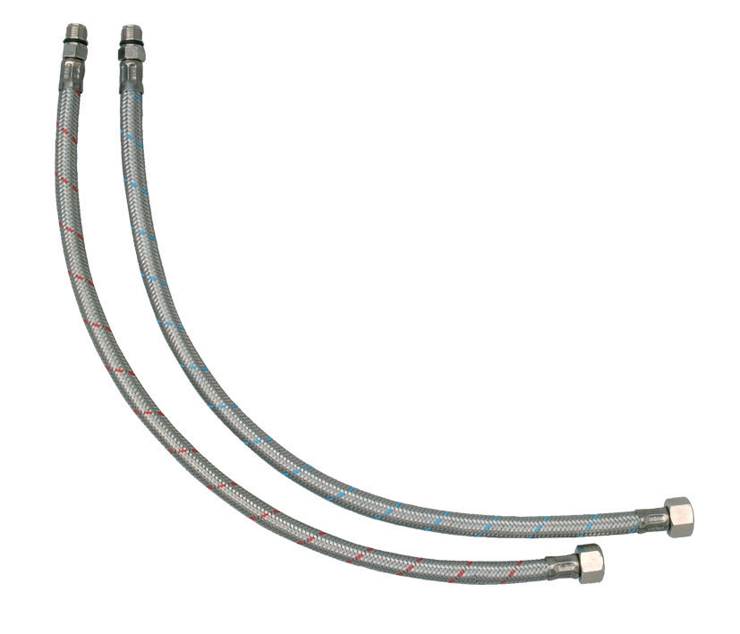 Réf. FLEXPEX2Raccords flexible F3/8" M10x1 L.420 mm en gaine Inox tressé avec âme PEX Ø 6 pour alimentation des robinetteries sanitaires.