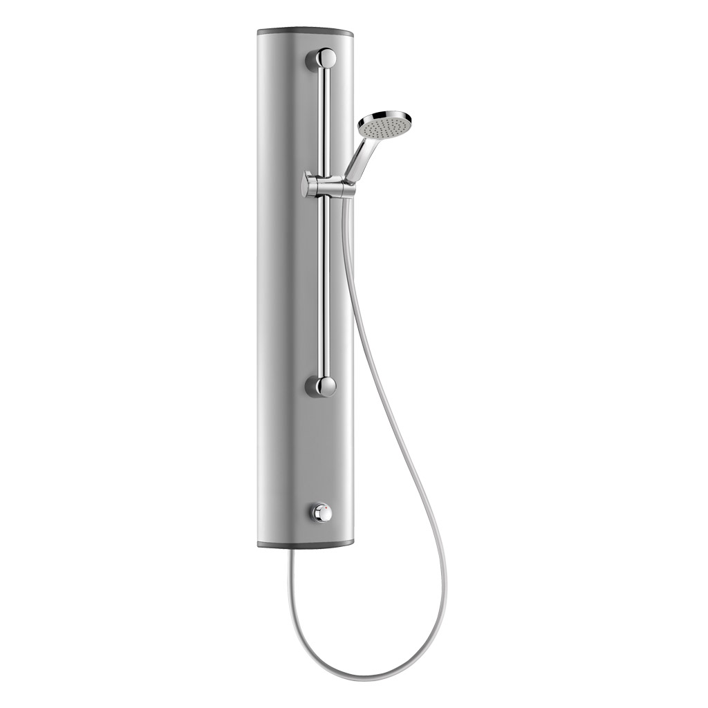 Pommeau de douche coulissant sur rampe chromé avec flexible.