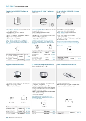 • Vrije uitgang F22x100 zonder rooster of wand • Vrije uitgang M24x100 zonder rooster of wand • BIOSAFE kraanuitgang M16,5x100