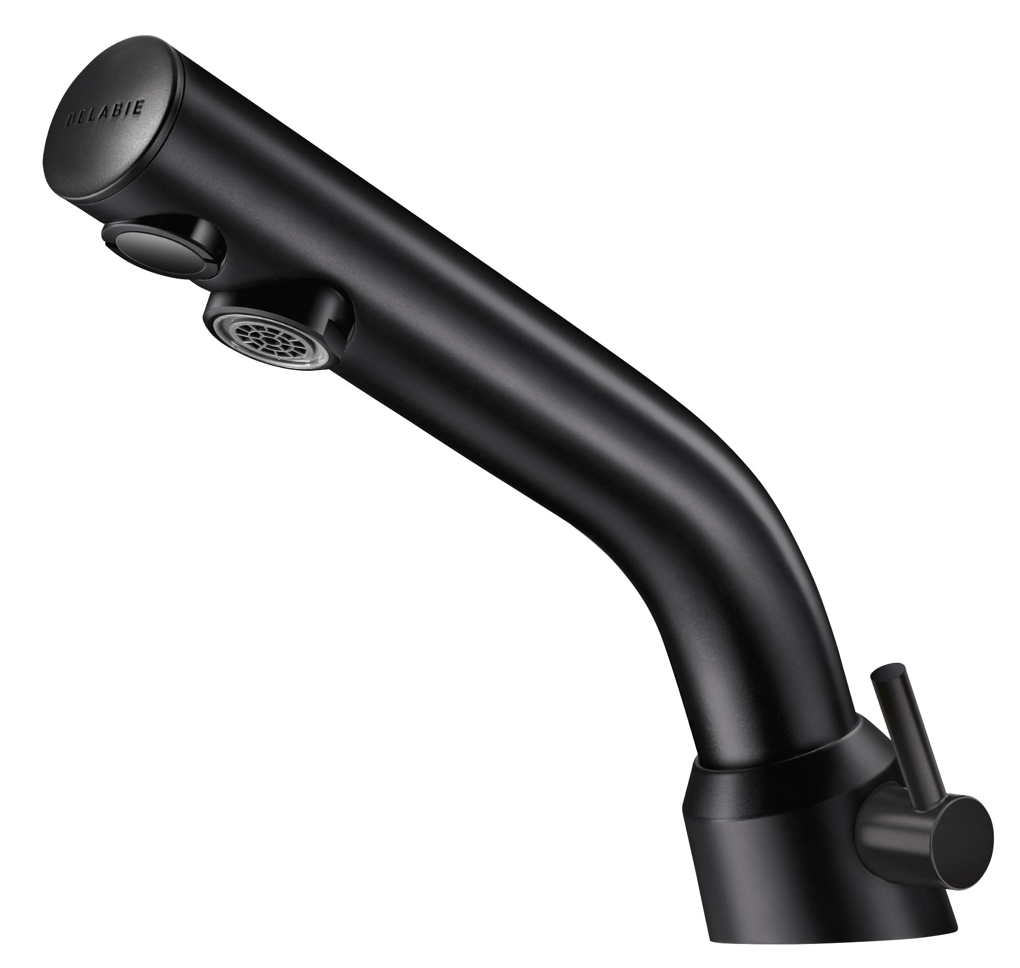 Uitvoering in mat zwart chroom.