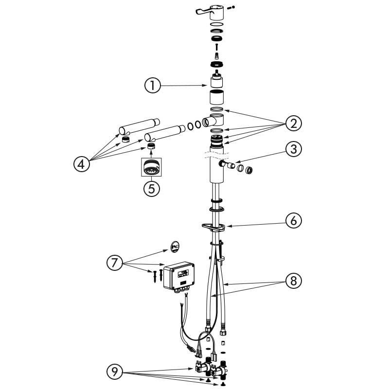 Elektronische hoge mengkraan uitermate geschikt voor zorginstellingen, ziekenhuizen en klinieken.