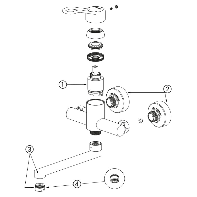 Ref. 2445Mechanische muurmengkraan voor wastafel.