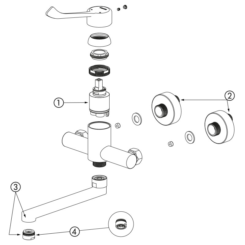 Ref. 2445LSMechanische muurmengkraan voor wastafel.