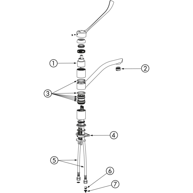 Mechanische mengkraan uitermate geschikt voor zorginstellingen, ziekenhuizen en klinieken.
