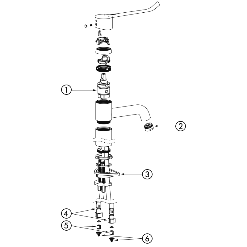 Mechanische mengkraan met drukcompensatie uitermate geschikt voor zorginstellingen, ziekenhuizen en klinieken.