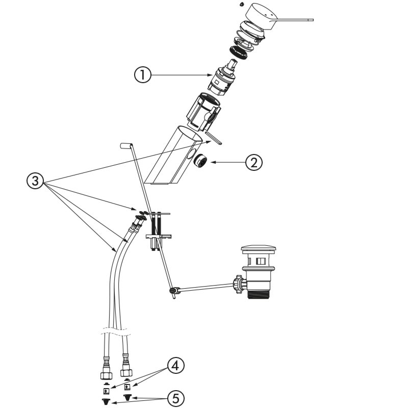 Geleverd met PEX flexibels F3/8" met draaiende koppeling.