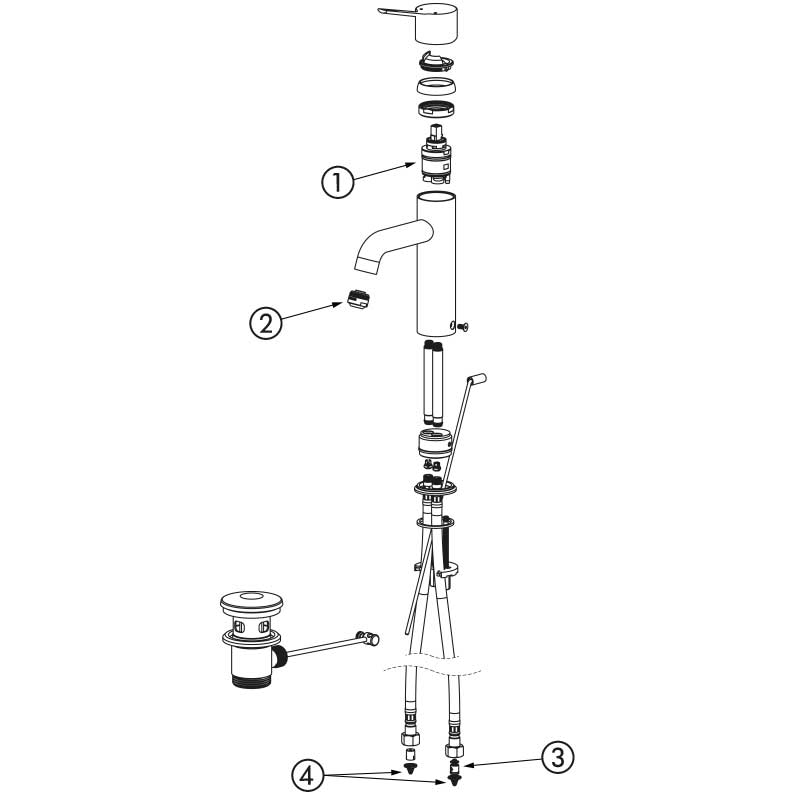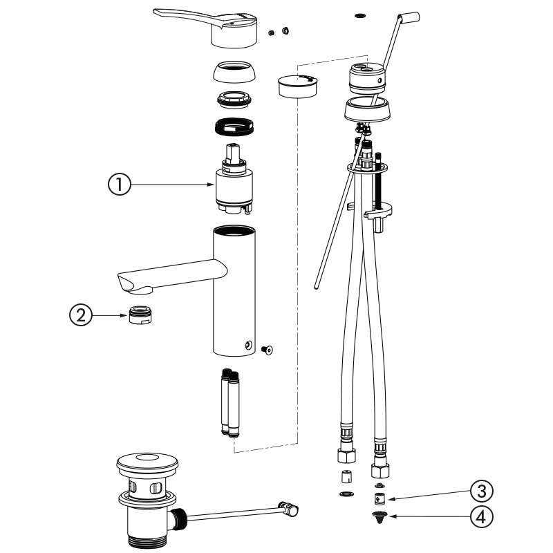 | 28201LBEL | Klassiek binnenwerk - Hygiënische hendel - Met trekplug - Zonder stopkraan - Flexibels | € 483,00 excl. BTW |