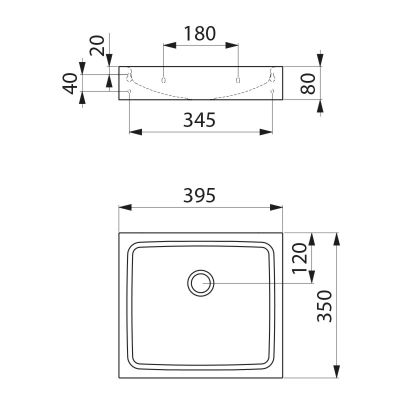 Ref. 120830BKWastafel te bevestigen aan de wand, 395 x 350 mm.