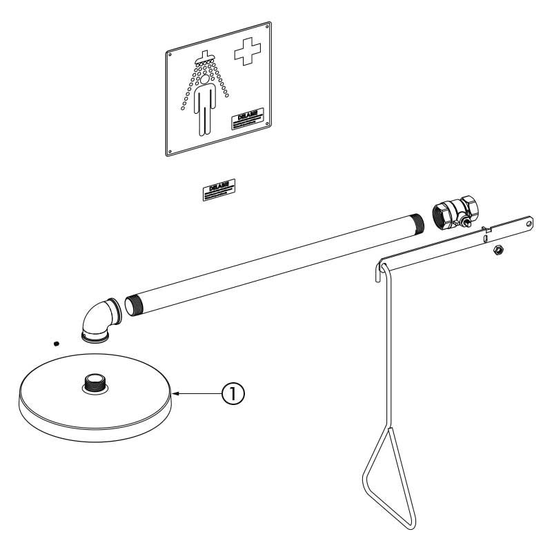 Ref. 9108Nooddouche muurmodel met ingebouwde aansluiting, met manuele bediening omvat: