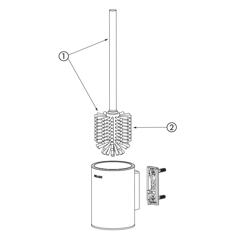 Verstevigd model toiletborstelhouder met toiletborstel: met antidiefstal bevestigingssysteem.