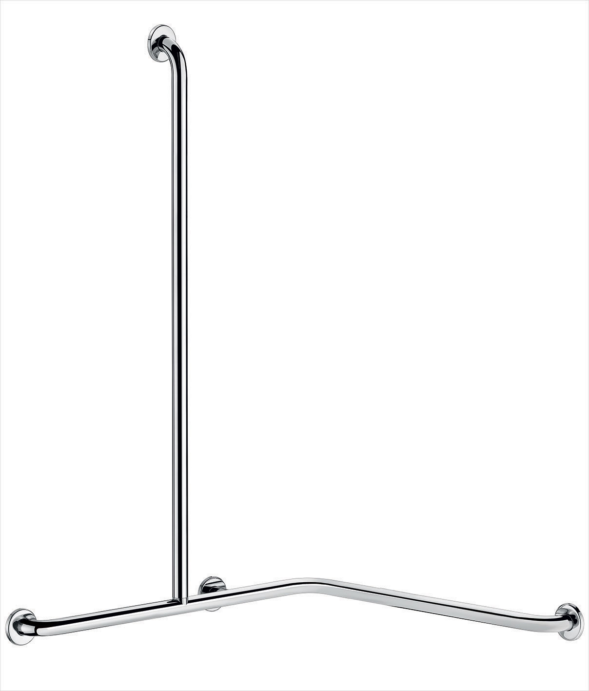 Haakse douchestang 2 muren met verticale greep, glanzend rvs