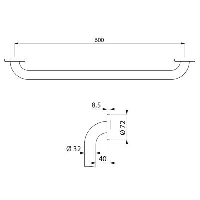 Barre de maintien droite Basic blanc, 600 mm Ø 32