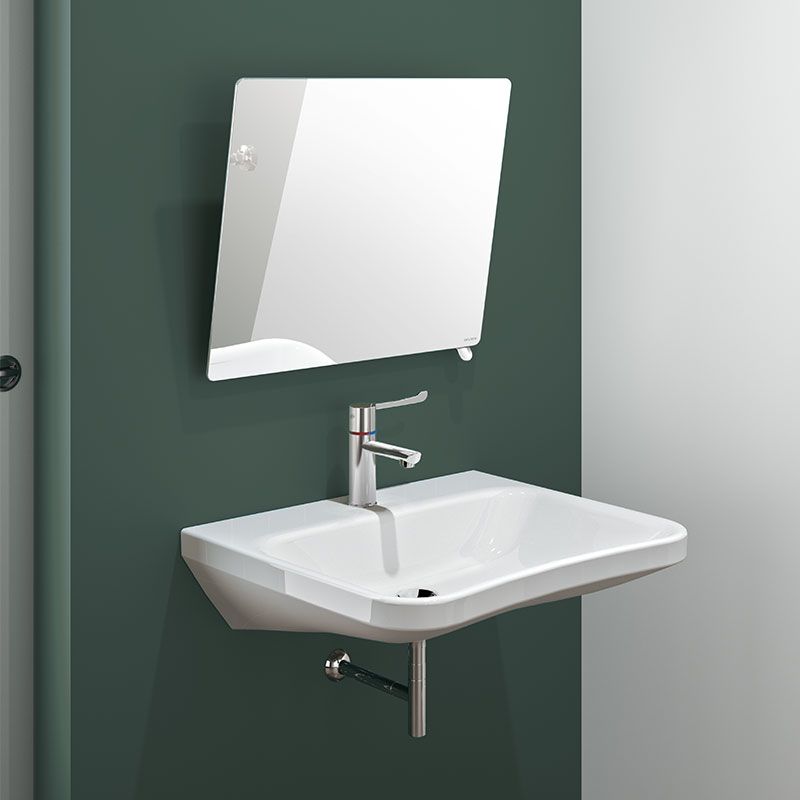 Réf. 510202SMiroir mural rectangulaire inclinable avec poignée permettant l'inclinaison du miroir pour des personnes en position assise ou en fauteuil.