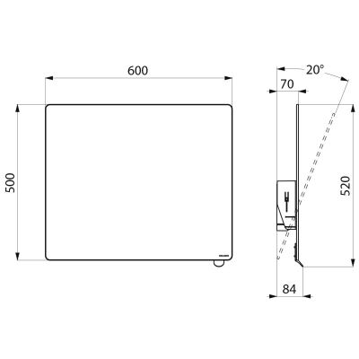 | Ecartement au mur | 70 mm et angle d'inclinaison 20° |