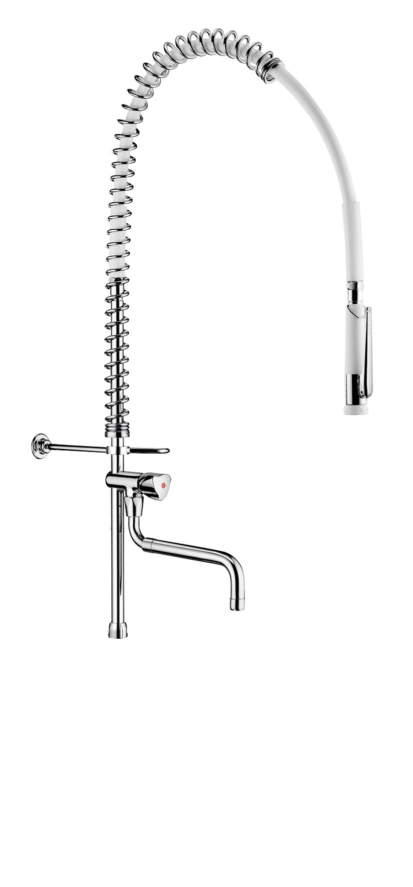 Réf. 433422Combiné de prélavage blanc sans robinetterie adapté à un usage intensif en cuisines professionnelles.